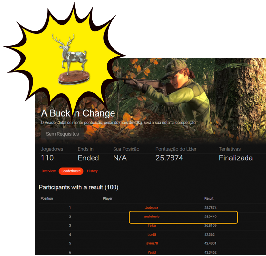 ObjetivoO Veado-Chital de menor pontuação, pesando mais de 80kg, será a sua nota na competição